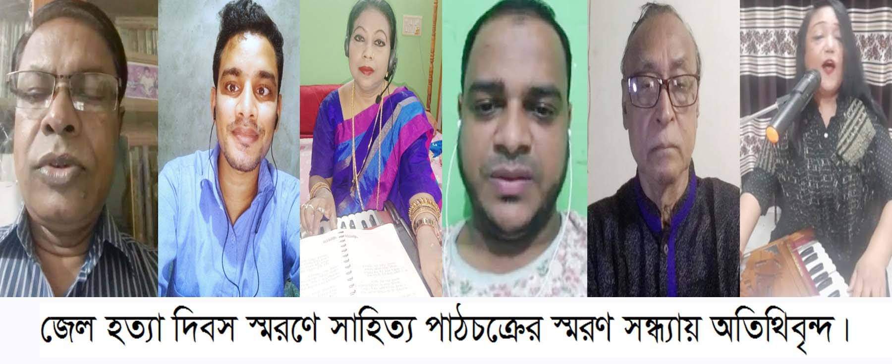 চট্টগ্রাম সাহিত্য পাঠচক্রের উদ্যোগে জেল হত্যা দিবস তথা জাতীয় চারনেতা স্মরণে এক স্মরণ সন্ধ্যা গত সোমবার ভার্চ্যুয়াল মাধ্যমে অনু্ষ্ঠিত হয়। এতে আলোচনায় অংশ নেন সংগঠনেের সভাপতি বাবুল কান্তি দাশ,সম্পাদক আসিফ ইকবাল,লেখক সাফাত সানাউল্লাহ,শিক্ষক বিজয় শংকর চৌধুরী,সংগঠক আলমগীর আলম, সঙ্গীত পরিবেশন করেন ত্রিপুরা রাজ্যের শিউলী বেগম,চট্টগ্রামের সুকুমার দে,লুপর্ণা মুৎসুদ্দী লোপা,কাকলী দাশ গুপ্তা, আবৃত্তি করেন সোমা মুৎসুদ্দী,সুমন চৌধুরী, শিহাব রহমান প্রমুখ। তবলায় ছিলেন প্রীতম আচার্য্য,সুচয়ন দে জয় কাব্য দাশ প্রমুখ।সভায় বক্তারা বলেন বিশ্ব সভ্যতার ইতিহাসে জঘন্যতম এক দিবস – জেল হত্যা দিবস।
