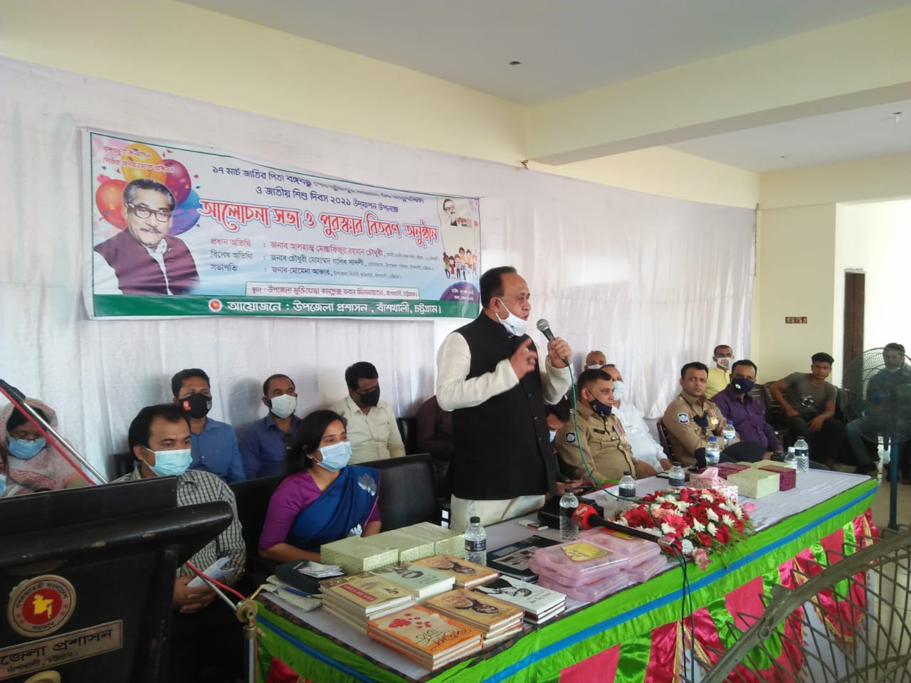 সারা দেশের ন্যায় চট্টগ্রামে বাঁশখালীতে জাতির জনক বঙ্গবন্ধু শেখ মুজিবুর রহমানের জম্মবার্ষিকী ও জাতীয় শিশু দিবস উপলক্ষে আলোচনা সভা ও পুরষ্কার বিতরণ অনুষ্টিত হয়েছে। আজ বুধবার (১৭ মার্চ) সকালে বাঁশখালী উপজেলা মুক্তিযোদ্ধা কমপ্লেক্স হল রুমে বঙ্গবন্ধু জম্মবার্ষিকী ও জাতীয় শিশু দিবসে আলোচনা সভা উপজেলা প্রশাসনের উদ্যােগে উপজেলা নির্বাহী কর্মকর্তা মোমেনা আক্তারের সভাপতিত্বে প্রধান অতিথি হিসেবে উপস্থিত ছিলেন, গণপ্রজাতন্ত্রী বাংলাদেশ সরকারের অর্থ মন্ত্রণালয় সম্পর্কিত সংসদীয় স্থায়ী কমিটির সদস্য আলহাজ্ব মোস্তাফিজুর রহমান চৌধুরী এমপি।
