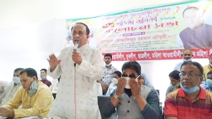 আলোচনা সভায় সংসদ মোস্তাফিজুর রহমান চৌধুরী বলেন, ১৯৪৯ সালের এই দিনে পুরান ঢাকার রোজ গার্ডেনে (হুমায়ুন সাহেবের বাড়ি) এক ঐতিহাসিক প্রেক্ষাপটে জন্ম হয় ক্ষমতাসীন দলটির। এরপর জাতি গঠনের প্রতিটি সোপানে-স্বাধিকার আন্দোলনের প্রতিটি ধাপে ও স্বাধীনতা পরবর্তি বাংলাদেশের উন্নয়নে গুরুত্বপূর্ণ অবদান রেখে আসছে বাংলাদেশ আওয়ামী লীগ। জনগণের লড়াই – সংগ্রামে নেতৃত্ব দেয়া দলটির ৭২ তম প্রতিষ্ঠাবার্ষিকীর বছরে বিশ্বব্যাপী প্রাণঘাতী করোনা নিয়ে এক বিপর্যস্ত ক্রান্তিকাল অতিক্রম করেছে বাংলাদেশ। আর এই করোনা কালীন সংকটকে মাথায় রেখে আজকের এই সীমিত পরিষরে বাংলাদেশ আওয়ামী লীগের ৭২তম প্রতিষ্ঠা বার্ষিকী পালন করছি। যতদিন আকাশে সূর্য উঠবে ততদিন লাল-সবুজের এই বাংলাদেশ বির্নিমানে বাংলাদেশ আওয়ামীলীগ নামক রাজনৈতিক দলটি তার কর্মকান্ড ধরে রাখবে এই প্রত্যয় নিয়ে দলীয় কর্মীদের একসঙ্গে কাজ করার আহ্বান জানানো হয়। জাতির জনকের স্বপ্নের বাংলাদেশে আজ অর্থনৈতিক উন্নয়নের মাধ্যমে সোনার বাংলাদেশে পরিনত হচ্ছে। তা বাস্তবায়ন করছে তারাই সুযোগ্য কন্যা প্রধানমন্ত্রী শেখ হাসিনা। শেখ হাসিনার হাতে বাংলাদেশ থাকলে ও এদেশ উন্নয়নশীল দেশে পরিনত হবে।