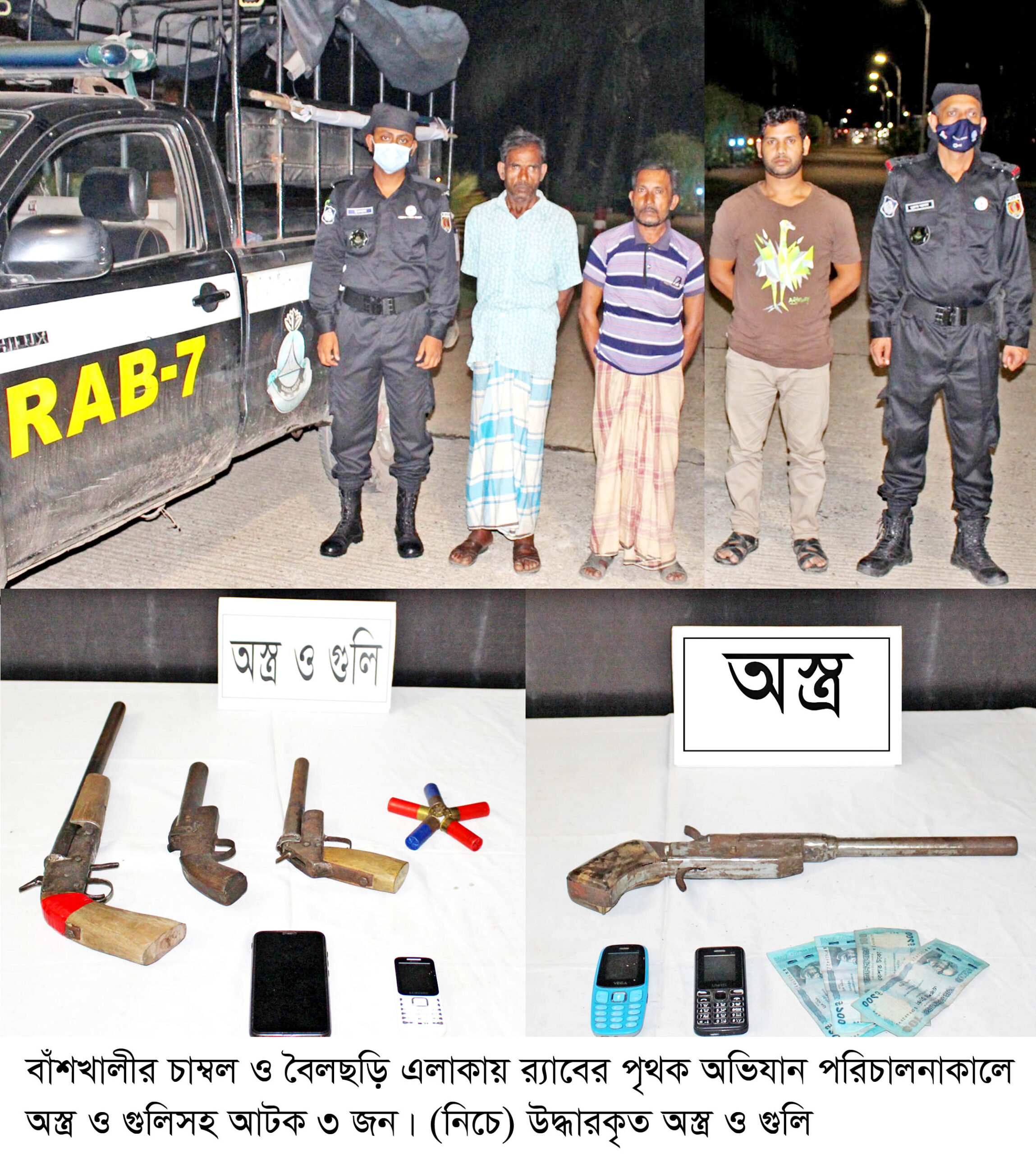 বাঁশখালীতে র‌্যাবের অভিযানে ৪ টি অস্ত্র ও ৫ রাউন্ড গুলি সহ আটক ৩