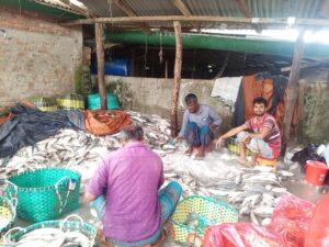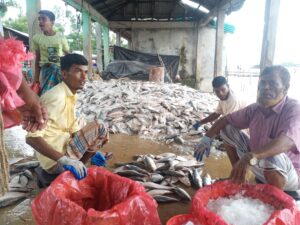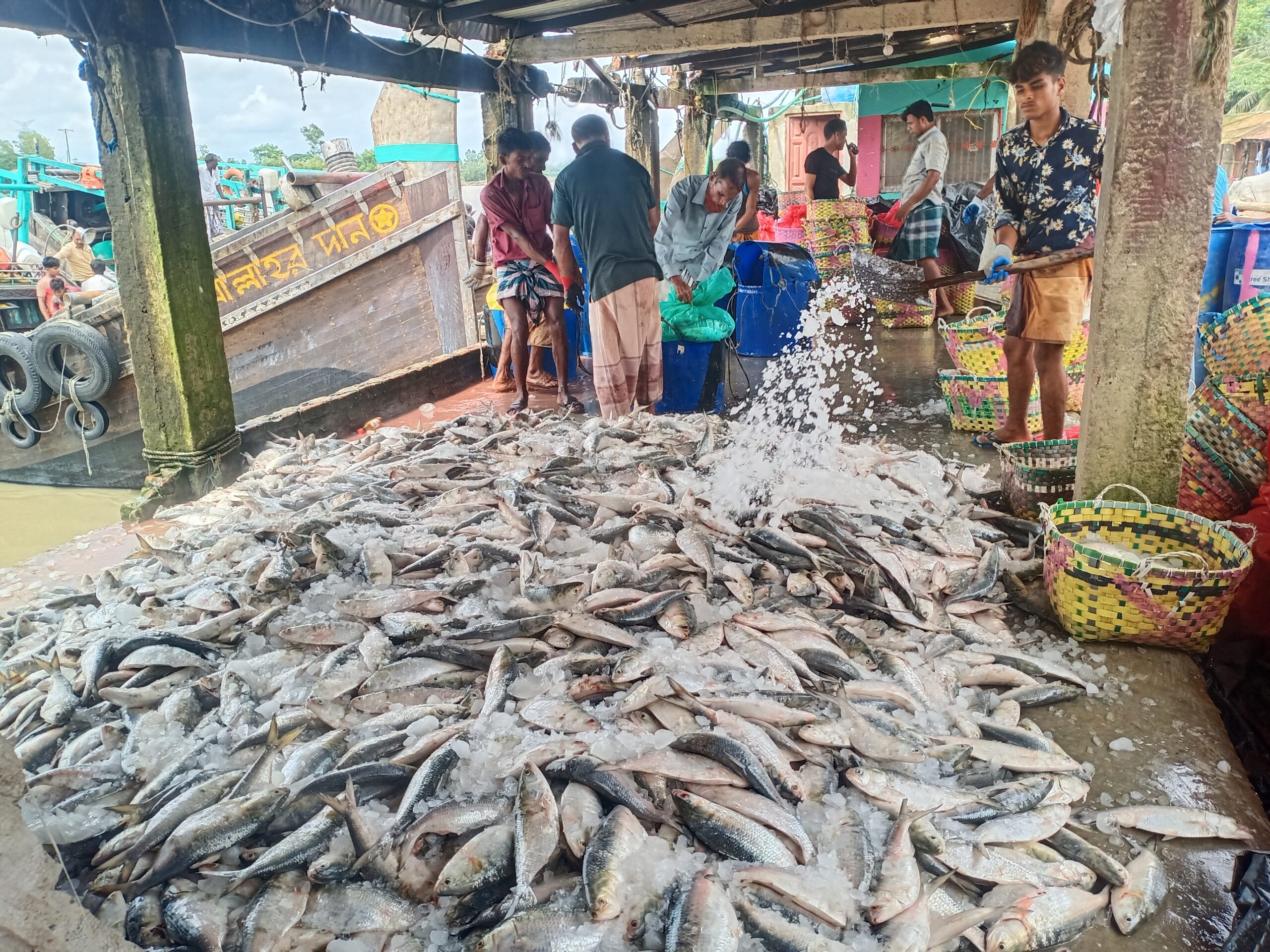 নির্ধারিত দামে সেসব মাছ কিনে নিচ্ছেন ঢাকাসহ বিভিন্ন স্থান থেকে আসা পাইকারি ক্রেতারা। এরপর দূর-দূরান্তে নেওয়ার জন্য ড্রামে সংরক্ষণ করা হচ্ছে মাছগুলো। জেলেদের হাত থেকে আড়তদার, সেখান থেকে পাইকার এবং বেপারিদের হাত ঘুরে এসব মাছ চলে যাচ্ছে চট্টগ্রাম ও ঢাকা, চাঁদপুর, বরিশাল, যশোরসহ দেশের বড় বড় আড়তে।