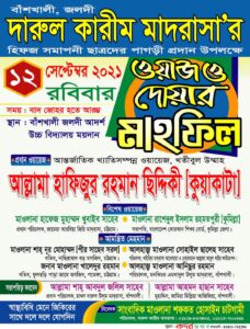 আগামীকাল চট্টগ্রামের বাঁশখালী উপজেলায় আসছেন আন্তর্জাতিক খ্যাতিসম্পন্ন মুফাসসিরে কুরআন খতিবুল উম্মাহ তারুণ্যের আইডল আল্লামা হাফিজুর রহমান সিদ্দিকী (কুয়াকাটা )। তিনি আগামীকাল রোববার (১১ সেপ্টেম্বর) বাঁশখালী দারুল কারীম মাদরাসার হিফজ সমাপনী ছাত্রদের পাগড়ী প্রদান উপলক্ষে বাঁশখালী আদর্শ উচ্চ বিদ্যালয় ময়দানে আয়োজিত ওয়াজ মাহফিলে প্রধান ওয়ায়েজ হিসেবে বাদে এশা তাক্বরীর পেশ করবেন।