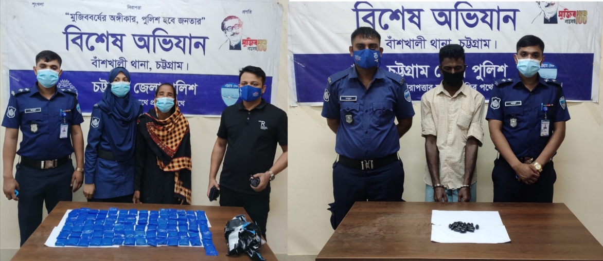 বাঁশখালী থানার অফিসার ইনচার্জ এবং পুলিশ পরিদর্শক (তদন্ত) আজিজুল ইসলাম এর নেতৃত্বে এসআই( নিঃ) মোঃ মাসুদ সঙ্গীয় ফোর্সসহ পুঁইছুড়ি এলাকায় অভিযানে চালিয়ে ১৬৮০০ পিস ইয়াবা ট্যাবলেটসহ বান্দরবন জেলার লামা আব্দুল্লাজিরী পাপিয়াখালী ২ নং ওয়ার্ড এলাকার মৃত গিয়াস উদ্দীনের স্ত্রী ওয়াছ খাতুন (৫০) ও অপর দিকে পৃথক অভিযানে ১ হাজার পিচ ইয়াবা ট্যাবলেটসহ কক্সবাজার জেলার উখিয়া কুতুব পালং ক্যাম্প (ক্যাম্প নং-০৬), মাঝি নরুল বশর এলাকার রশিদ আহমদের পুত্র আবুল কালাম (৩০) কে আটক করা হয়।