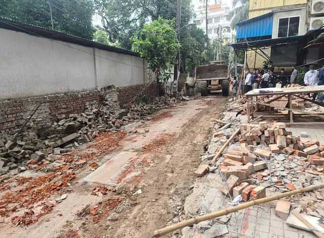 আজ মঙ্গলবার বিকেলে সড়কটির দুই পাশের স্থাপনা ও দেয়াল ভেঙে ফেলা হয়েছে। ঢাকা দক্ষিণ সিটি করপোরেশনের নির্বাহী ম্যাজিস্ট্রেট মোহাম্মদ মনিরুজ্জামানের নেতৃত্বে পরিচালিত অভিযানে ঢাকা দক্ষিণ সিটির নির্বাহী প্রকৌশলী মিঠুন চন্দ্র শীলসহ সংশ্লিষ্ট কর্মকর্তারা অংশ নেন। এতে ১৪ ফুটের সড়কটি এখন ২০ ফুট চওড়া হয়েছে।