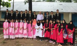 পরে বিদায়ী পরীক্ষার্থীদের শিক্ষা সামগ্রী বিতরণ করা হয়।