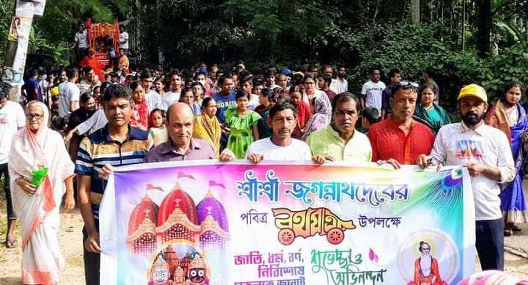 প্রভাস চক্রবর্ত্তী,বোয়ালখালী: বোয়ালখালী থানার সার্ব্বিক সহযোগিতায় কধুরখীল জগদানন্দ মিশন থেকে প্রতি বৎসর ন্যায়,এবারও আনন্দ ও উদ্দীপনায় পালিত হল জগন্নাথের রথযাত্রা। শতশত ভক্ত নর-নারী গন সহ এ রথ শোভা যাত্রায় উপস্থিত ছিলেন হিন্দু বৌদ্ধ খৃষ্টান ঐক্য পরিষদ “র’ দক্ষিণ জেলা সাংগঠনিক সম্পাদক সাজীব বৈদ্য,মিশনের সাধারণত সম্পাদক পার্থ সারথী চৌধুরী,ছাত্র যুব ঐক্য পরিষদ” র’ সভাপতি সরোজ চৌধুরী, সাধারণ সম্পাদক ডাঃ প্রভাস চক্রবর্ত্তী,সহ সভাপতি অরুপ চৌধুরী( মিল্টন),বিষুরাম বসু (শাটু),এবারগ্রীন ডায়ঃসেন্টারের ডাঃ সুবল দাশ,শ্যামল বিশ্বাস,জুয়েল চৌধুরী,শিমুল পাল,শিক্ষিকা ডেইজি ভট্টাচার্য্য,বিকাশ সিকদার সুব্রত দত্ত ( রাজু),সুমন দে,প্রিয়ঞ্জিত চক্রবর্ত্তী,জয়দীপ চক্রবর্ত্তী, উৎফল চৌধুরী,,রানা চৌধুরী,প্রদীপ দে,সহ সু্হ্রদ ক্লাবের অন্যান্য নেতৃবৃন্দ এ সময় উপস্থিত ছিলেন। এ রথযাত্রা পূর্ব গোমদন্ডী লোকনাথ মন্দির প্রাঙ্গনে পবিত্র সহকারে স্হাপন করে আগত ভক্তদের মাঝে প্রসাদ বিতরণ করা হয়।