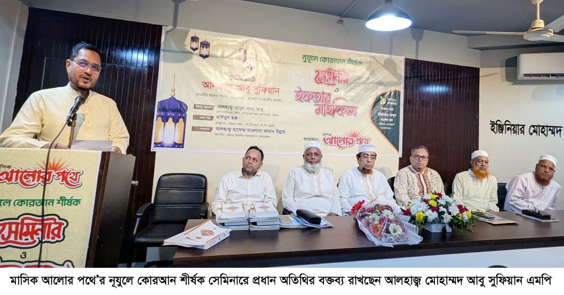 পবিত্র মাহে রমজান ও কোরআন নাজিলের গুরুত্ব নিয়ে চট্টগ্রামে অনুষ্ঠিত হলো বিশেষ সেমিনার ও ইফতার মাহফিল। আজ সোমবার বিকেলে চট্টগ্রাম প্রেস ক্লাবের ইঞ্জিনিয়ার মোহাম্মদ আব্দুল খালেক হলে ইসলামিক ম্যাগাজিন **‘মাসিক আলোর পথে’**র উদ্যোগে ‘নূযুলে কোরআন’ শীর্ষক এই অনুষ্ঠান সম্পন্ন হয়।
